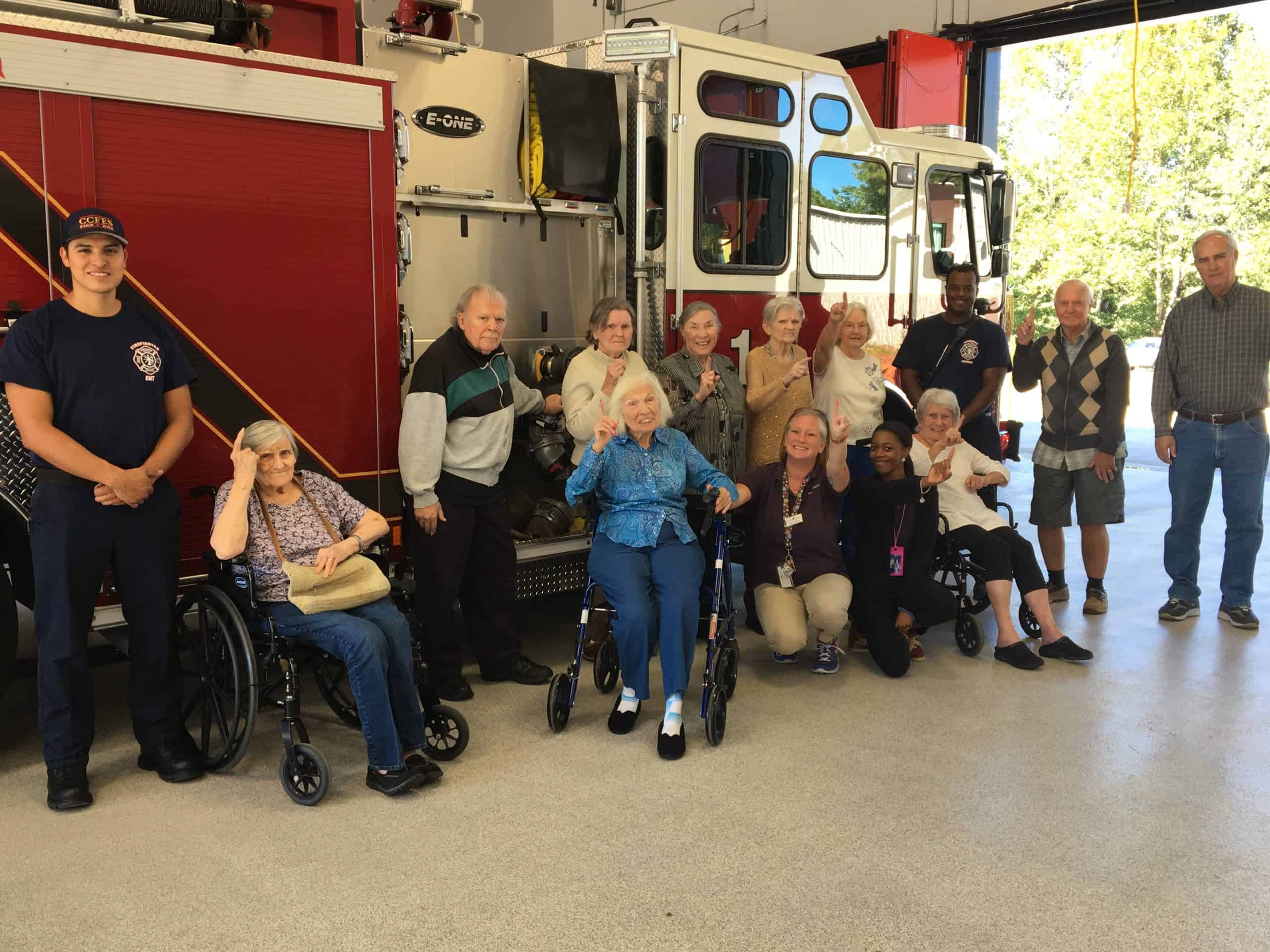 Not only was it a great outing, but they got a wonderful history lesson in the process. As it turns out, the Cherokee County Fire Station is the county’s very FIRST fire station. Back in the 1930s, a local resident decided there wasn’t an emergency response team close enough to the area, so he bought a trailer and a fire truck and named himself chief of the department! The years passed and they added on bit by bit, but this year they finally built a state-of-the-art new fire station – with a bit of the old remaining. They saved a wall from the original structure and incorporated it into the new building. A wonderful reminder that we should always be grateful for the strong foundations of our past. The crew gave a very excited group of residents their very own tour of the station, and the residents got to share their cookies and heartfelt thanks with the first responders!